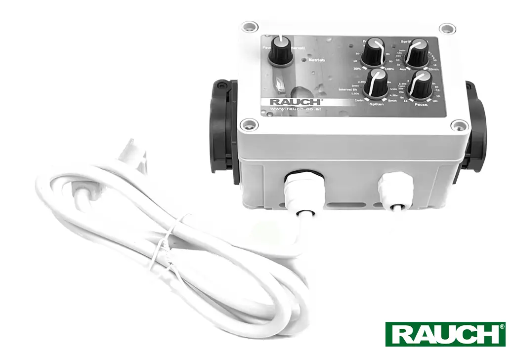 Diese Zeitintervall- und Luftfeuchtesteuerung besitzt einstellbare Zeitintervalle für Nebel und Pause sowie Feuchtesteuerung und eine automatische Hygienespülung mit einem Ein/Ausschalter.
